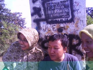 Puncak 4 Burangrang di depan mataaaa..!!! Semangat banget deh kami bertiga.. Didi dan Johan memimpin perjalanan. Kami masih harus melewati satu tanjakan lagi. Di tengah tanjakan, kami melewati satu batu nisan bertuliskan nama seorang pria yang meninggal di tahun 2002. Dari lambang yang tercetak di sana sepertinya pria itu salah seorang anggota pencinta alam. Huhuhu.. Betapa sedihnya..