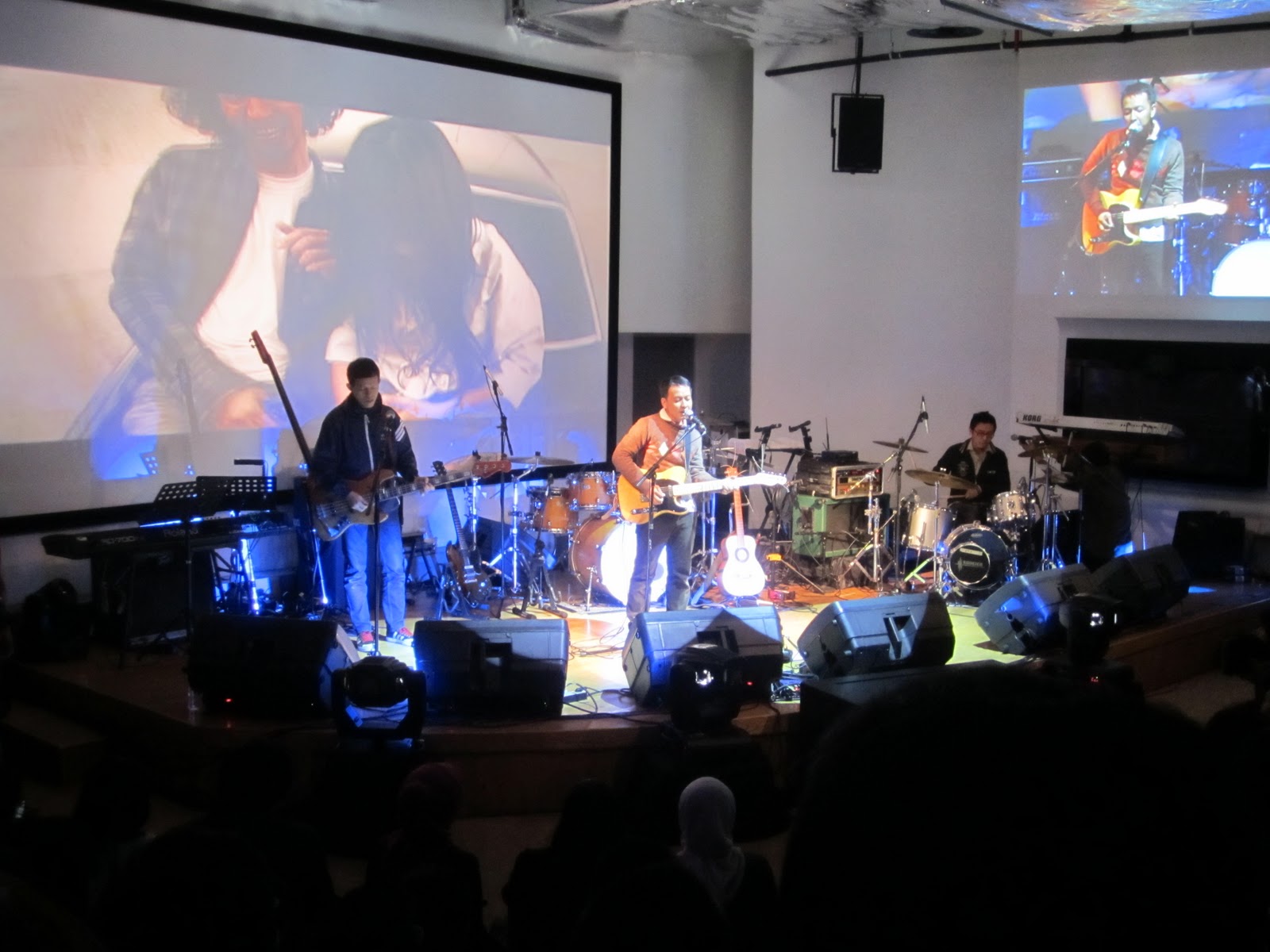 Pas show akan dimulai, saya senyum senyum sendiri. Hey, this is my first time watch they performance, and i’m excited! Saya ngaku penggemar berat band indie ini tapi setiap mereka manggung saya selalu gak berkesempatan hadir. Saya baru bisa nonton aksi panggung mereka SEKARANG! Gak sabaaaaaarrrr….